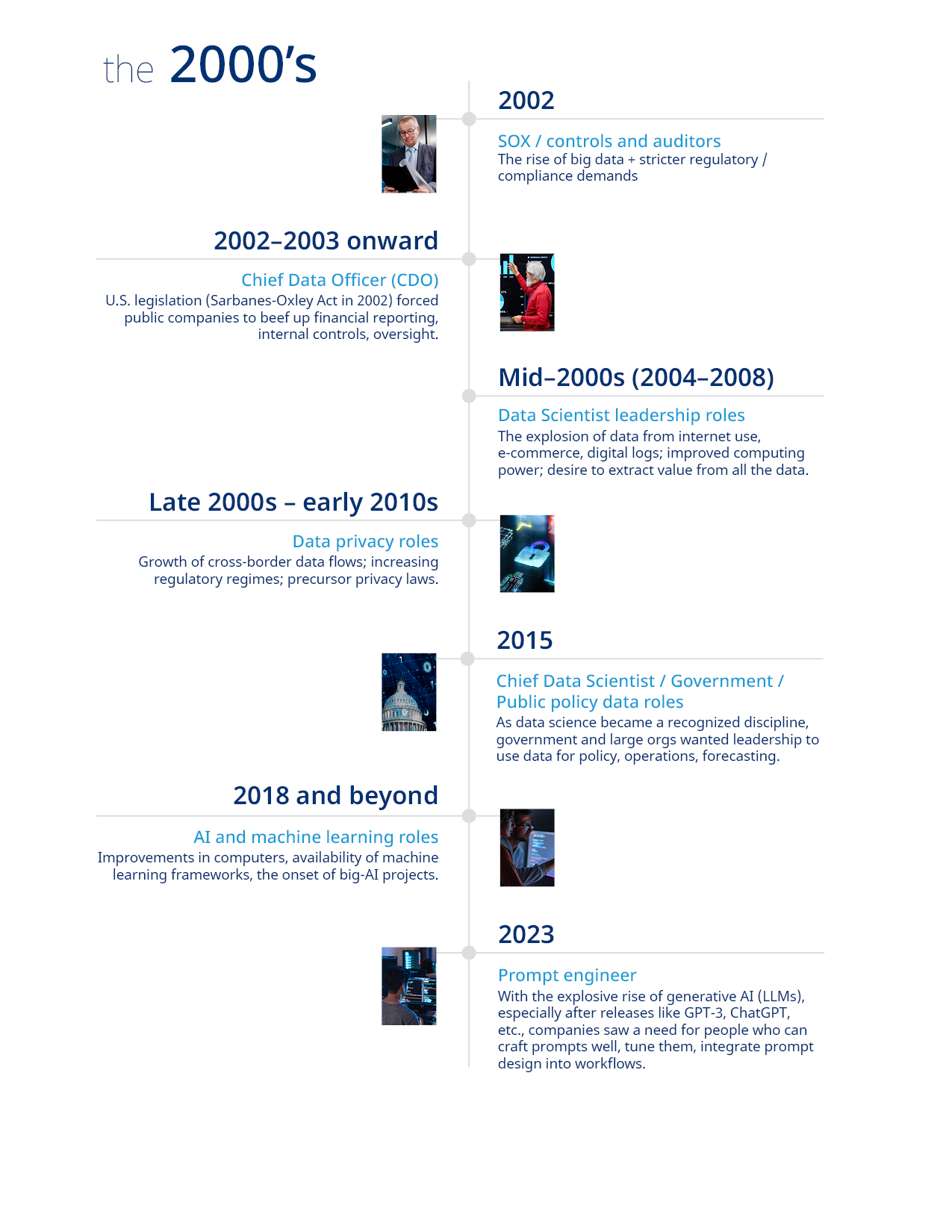 Let’s travel back in time and look at notable emerging jobs/roles over the past couple of decades alongside what triggered them.